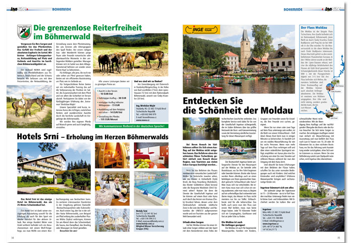 Nakladatelství InnSiDE Verlag & Werbeagentur se sídlem v Pasově má v Česku zastoupení, které vedou bezvadní lidé. Prezentují naše podnikatele z oblastí cestovního ruchu, životního stylu, volného času, kultury, umění a gastronomie. Magazín vychází už 25 let v nákladu 20 000 výtisků. Distribuuje se nejen v Bavorsku, ale i v Rakousku. Firmy, které se zde prezentují, mi z grafického hlediska dávájí neuvěřitelný rozmanitý prostor pro realizaci na jakékoli téma.
